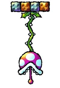 Bungee Piranhas, are purple Piranha Plants that use their stem as a bungee cord. Their only appearance is in Yoshi's Island DS. Bungee Piranha Plants are very similar to Elasto-Piranhas. They hang on ceilings, waiting for their prey to come along. They then bungee down, attempting to grab their prey with their mouths. A bigger version called the Big Bungee Piranha appears as World 2's Boss in the eighth level, Big Bungee Piranha's Lair.
